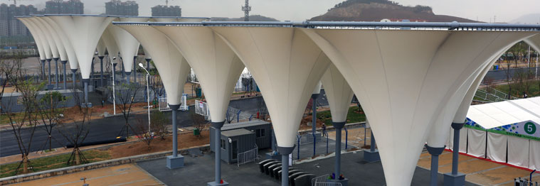pvdf膜材具有熱軟度高不易發(fā)生破裂、性價比高、制作周期短、施工速度快的優(yōu)點。近年來經(jīng)過工藝及材料的不斷改進,其耐候性及防污性得到進一步提高,自潔性高的pvdf膜材的耐用年限可達15年以上,該材料目前是國內(nèi)使用量******的膜材。
