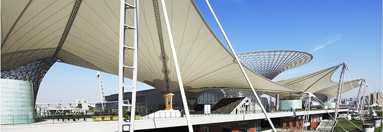 (1)PTFE膜材的******特點(diǎn)是強(qiáng)度高,中等強(qiáng)度的PTFE 膜厚度僅0.8mm,但它的拉伸強(qiáng)度已達(dá)到鋼材的水平;而且彈性模量較低,有利于膜材形成復(fù)雜的曲面造型;